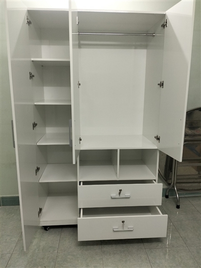 Khoang đơn bên trong được chia làm nhiều ngăn trống có thể để quần áo gấp gọn, túi xách, giày dép, khăn tắm ….rất tiện lợi và ngăn nắp