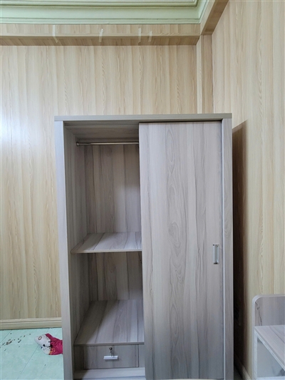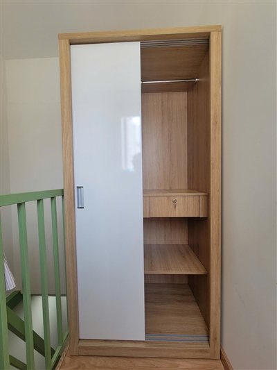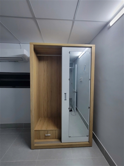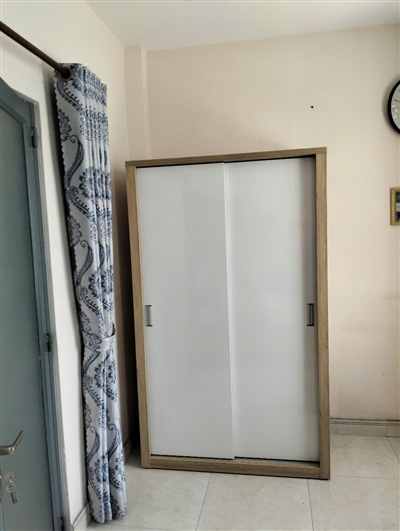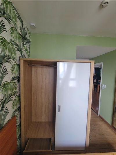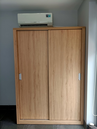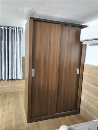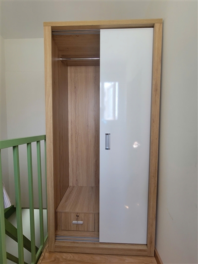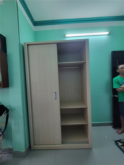 Phòng mình hơi hẹp nhưng 2 anh thợ vẫn hỗ trợ tìm cách lắp tủ ok hoàn thiện nhất. Màu tủ đẹp, thiết kế hợp lí.