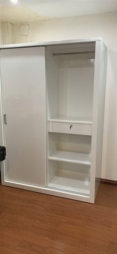 Khoang lớn thứ 2 bên trên cũng có 1 thanh treo inox dùng để treo áo thun , áo sơ mi, tiếp đến là một hộc kéo treo có ổ khóa để cất giữ nữ trang, đồng hồ, hoặc những vật dụng nhỏ xinh… .Bên khoang này còn có 2 ngăn trống có thể để quần áo gấp gọn, nón, túi xách, giày dép, khăn tắm ….rất tiện lợi và ngăn nắp