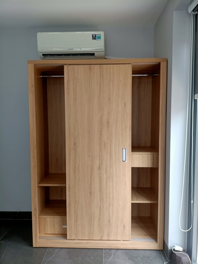 tủ đẹp, dày dặn, các anh lắp ráp nhiệt tình, cửa lùa tiện lợi