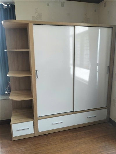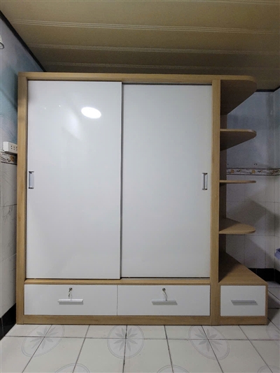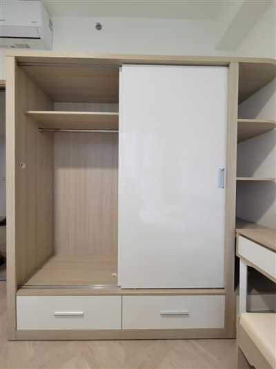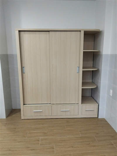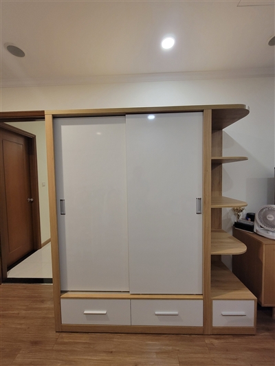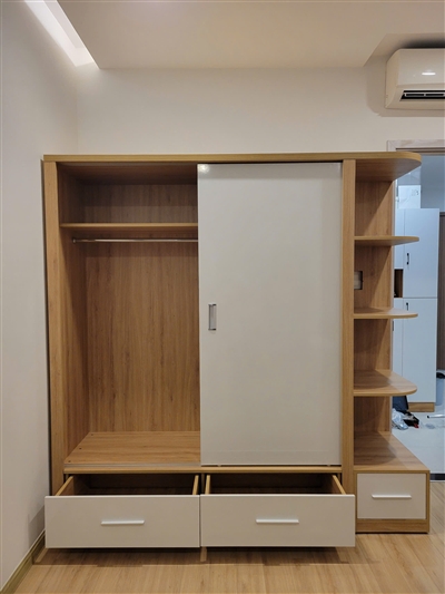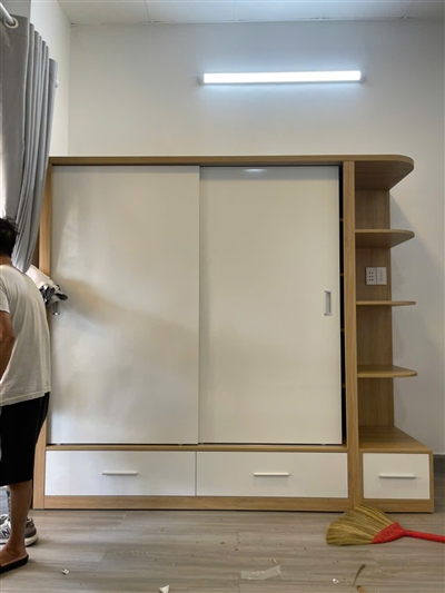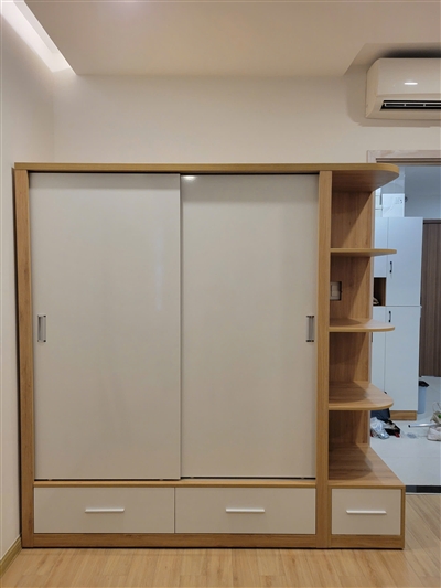 Tủ quần áo cửa lùa với kệ trang trí bên ngoài có các đặc điểm sau