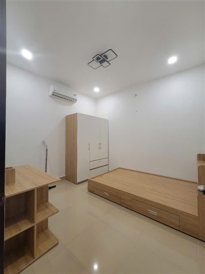 - Màu sắc vân gỗ sồi kết hợp với cửa màu trắng tạo nên sự tinh tế và hiện đại cho không gian.