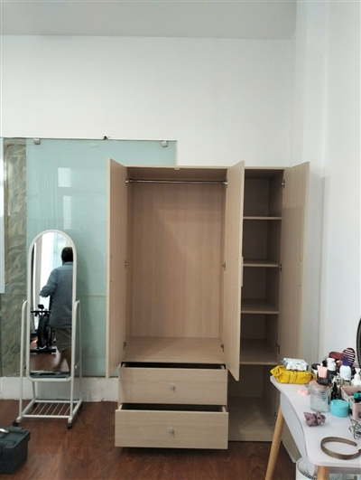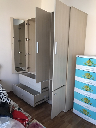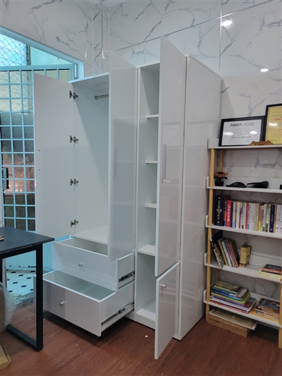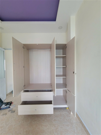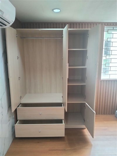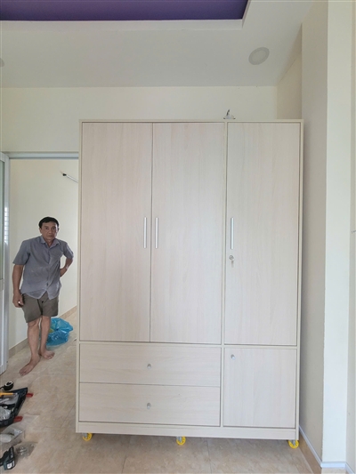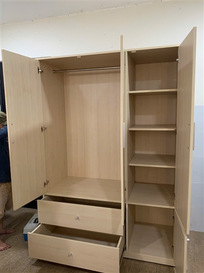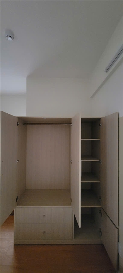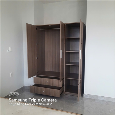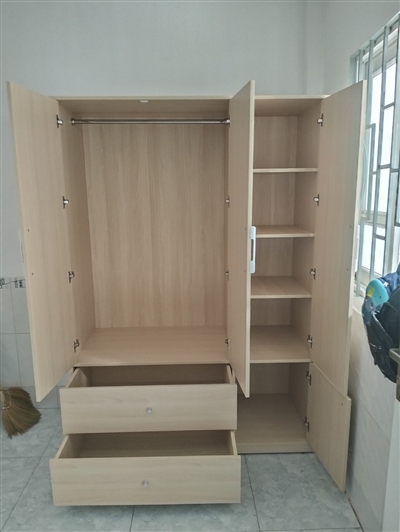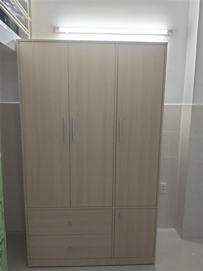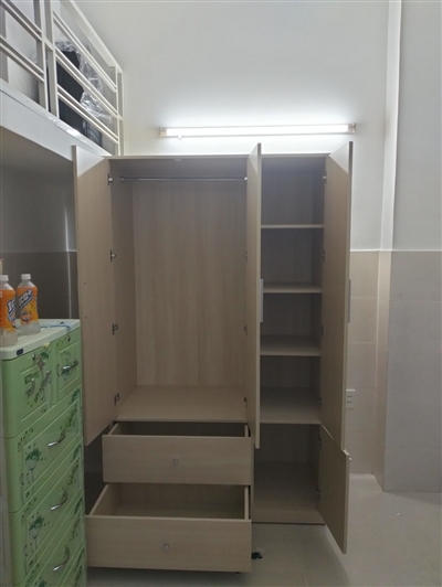 Tủ gồm 1 khoang đôi lớn bên trên có thanh treo bằng inox dùng để treo quần áo, váy… thoải mái, rộng rãi. Khoang đơn được chia làm 2 phần với 2 cánh tủ trên dài, dưới ngắn riêng biệt được thiết kế nhiều ngăn trống dùng để quần áo gấp gọn, giày dép, túi xách, nón…được ngăn nắp, sạch sẽ.