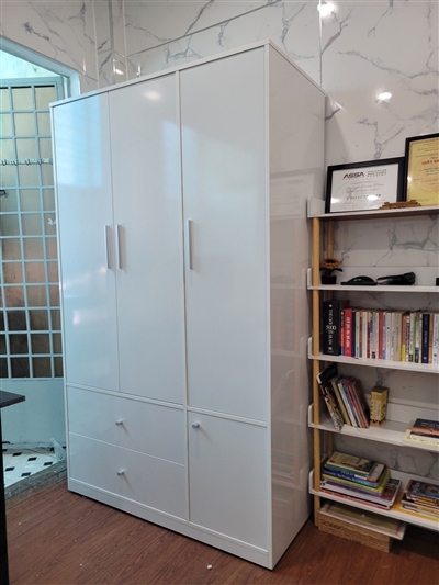 Tủ có 2 hộc kéo ngoài tiện lợi, thời trang được thiết kế tay nắm gù nhỏ gọn, dễ sử dụng, tạo nên sự hiện đại, trang nhã cho tủ áo.
