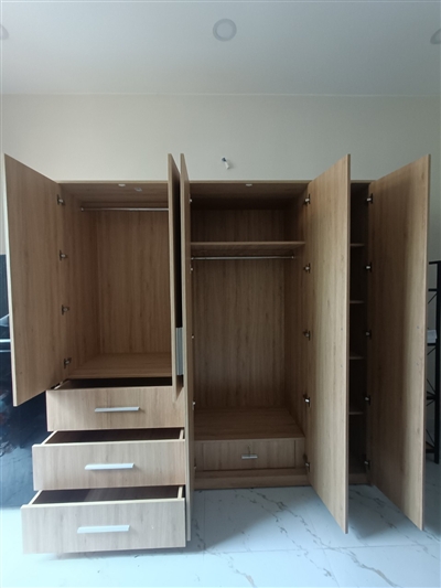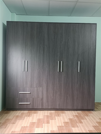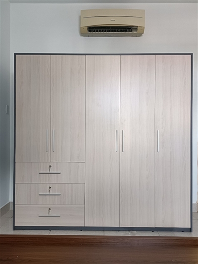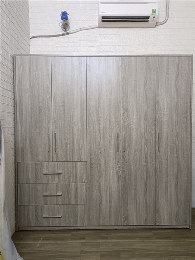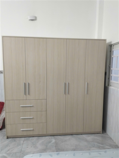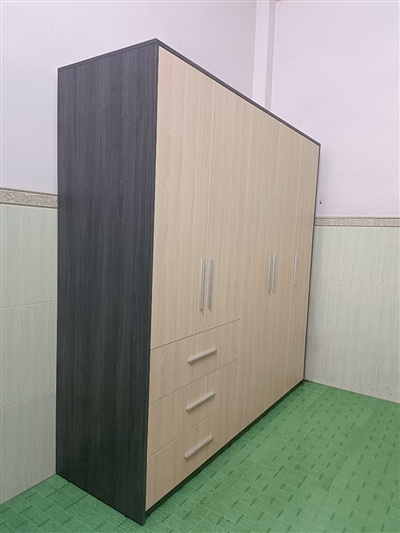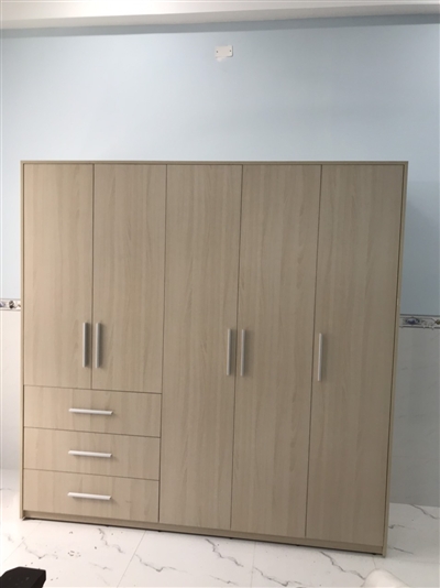 Tủ áo TQA-TP29 được phối màu gỗ đậm, nhạt độc đáo với thiết kế gồm 5 cánh mở có kích thước dài, ngắn khác nhau. Điểm nhấn là 3 hộc kéo lớn bên ngoài tiện dụng, đa năng chứa rất nhiều quần áo và các vật dụng khác khi cần thì lấy ngay mà không cần phải mở cánh tủ.