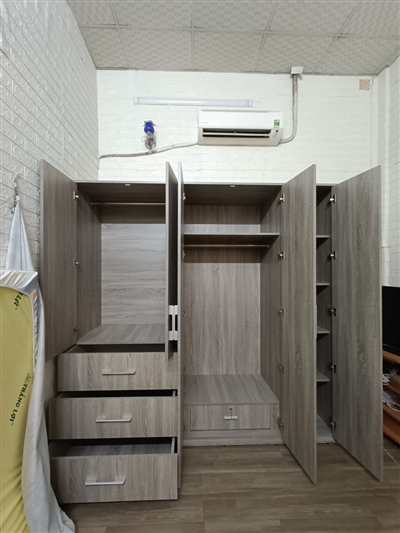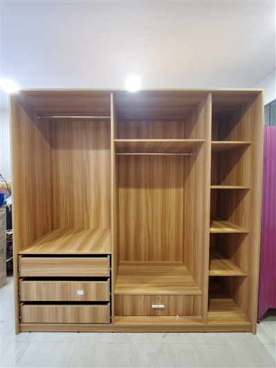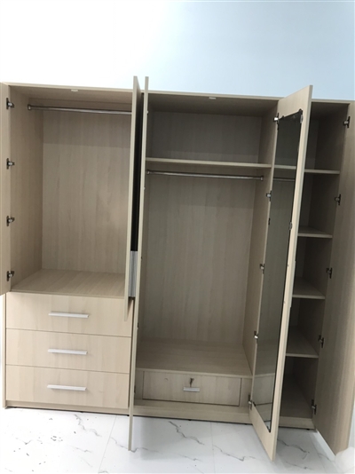Tủ còn thiết kế bên trong có các ngăn trống dùng để cất giữ vali, quần áo xếp gọn, túi xách, giày dép, khăn tắm rất gọn gàng,ngăn nắp.