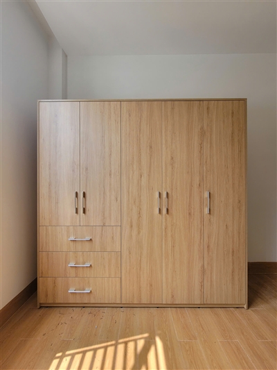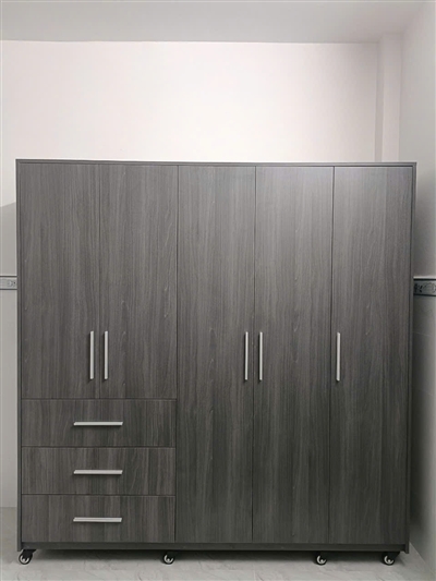 Tủ áo TQA-TP29 được phối màu gỗ đậm, nhạt độc đáo với thiết kế gồm 5 cánh mở có kích thước dài, ngắn khác nhau. Điểm nhấn là 3 hộc kéo lớn bên ngoài tiện dụng, đa năng chứa rất nhiều quần áo và các vật dụng khác khi cần thì lấy ngay mà không cần phải mở cánh tủ.