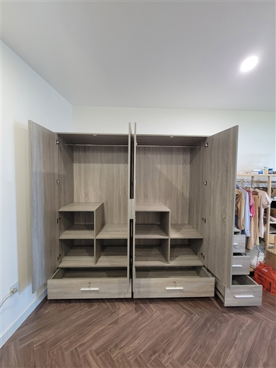 Tủ siêu đẹp, có nhân viên đến lắp đặt cho mình luôn. Rộng rãi thoải mái, mình thích kiểu tủ này nhưng tìm mãi mới được. Giá rất ok