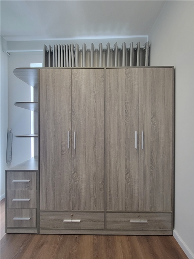 Tủ gỗ đẹp, màu sắc nhã nhặn và sang trọng. Kích thước vừa vặn cho phòng ngủ của tôi. Giao hàng nhanh và lắp đặt chuyên nghiệp. Rất hài lòng